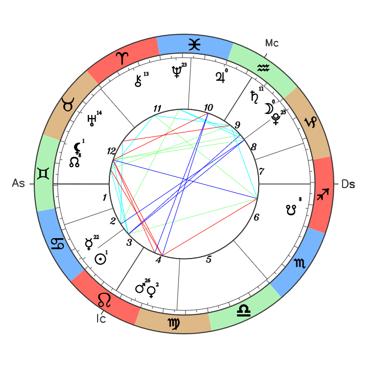 Exprimer notre volonté intérieure (Mercure conjoint Soleil) selon ce qui nous tient à coeur et que nous considérons être notre Liberté (Lune en Verseau). Comment trouver sa liberté lorsqu’on se retrouve soumis à des contraintes extérieures (Saturne en Verseau), à des restrictions, à des obligations qui remettent en cause notre autorité personnelle (Soleil en Lion) ?