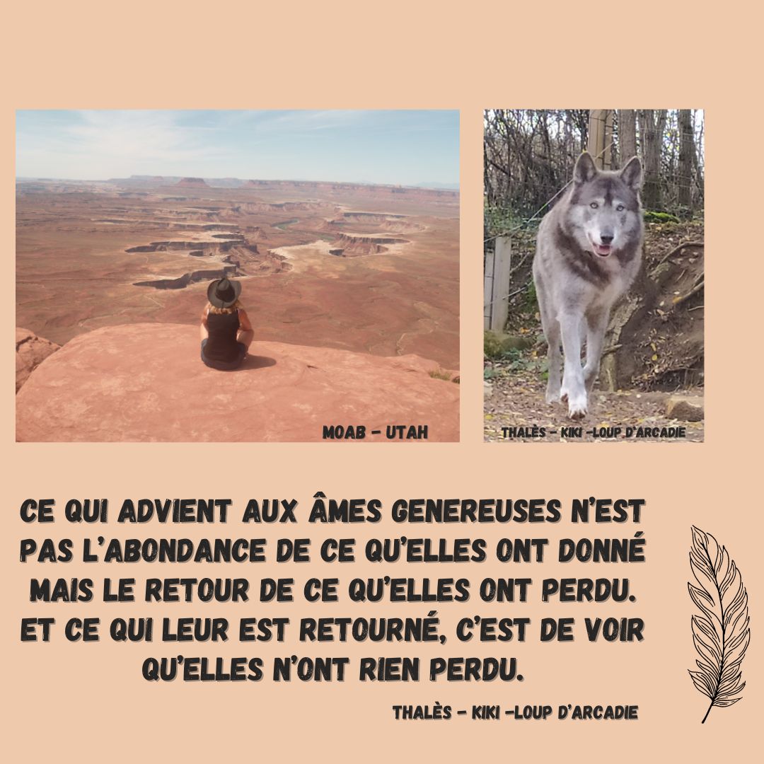 « Ce qui advient aux âmes généreuses n’est pas l’abondance de ce qu’elles ont donné mais le retour de ce qu’elles ont perdu. Et ce qui leur est retourné, c’est de voir qu’elles n’ont rien perdu. » Thalès « Kiki » Loup d’Arcadie.