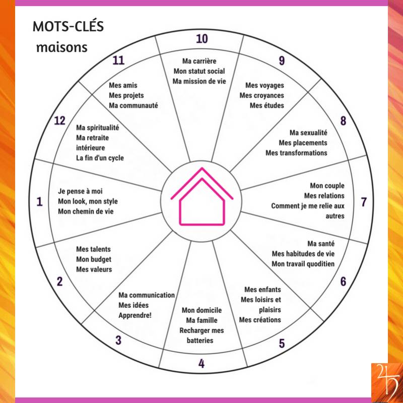 Le signe astrologique dans lequel début la maison (=cuspide sur la carte du Ciel) renseigne sur la façon de vivre la maison.
