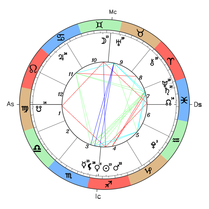 Mars en Sagittaire, situé au 23° (degré sabian : « Des immigrants entrant dans un nouveau pays ») et proche du Soleil, symbolise un seuil à franchir. Son carré à Saturne en Poissons teste nos motivations : il ne s’agit plus d’agir par simple élan — fût-il généreux ou ambitieux — mais par justesse intérieure.
